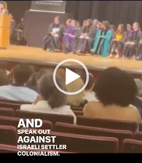 [screenshot of the suffering palestinians that the *CUNY grad defender of Jenin murderers )below) gave a rousing speech at the CUNY ceremony!]
