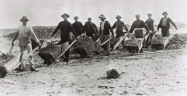 Stories from the Land of Israel. Adapted from Malachim Kivnei Adam, pp. 321-322. Illustration image: Photo of Jewish pioneers carting soil over the sands of Tel Aviv (1910).