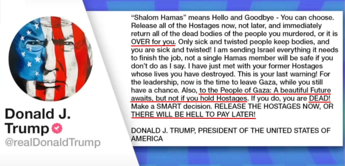 Trump, the Chief of the Princes of Edom (Western exile of the Jews), does call out the people residents of Gaza. What an embarrassment when a drop of wisdom from a non-Jew is credited with moving us closer to a Torah approach to our enemies! On the other hand, offering a new paradise to them will be our downfall, if Trump's additional, ulterior motives for the region do not destroy us first.